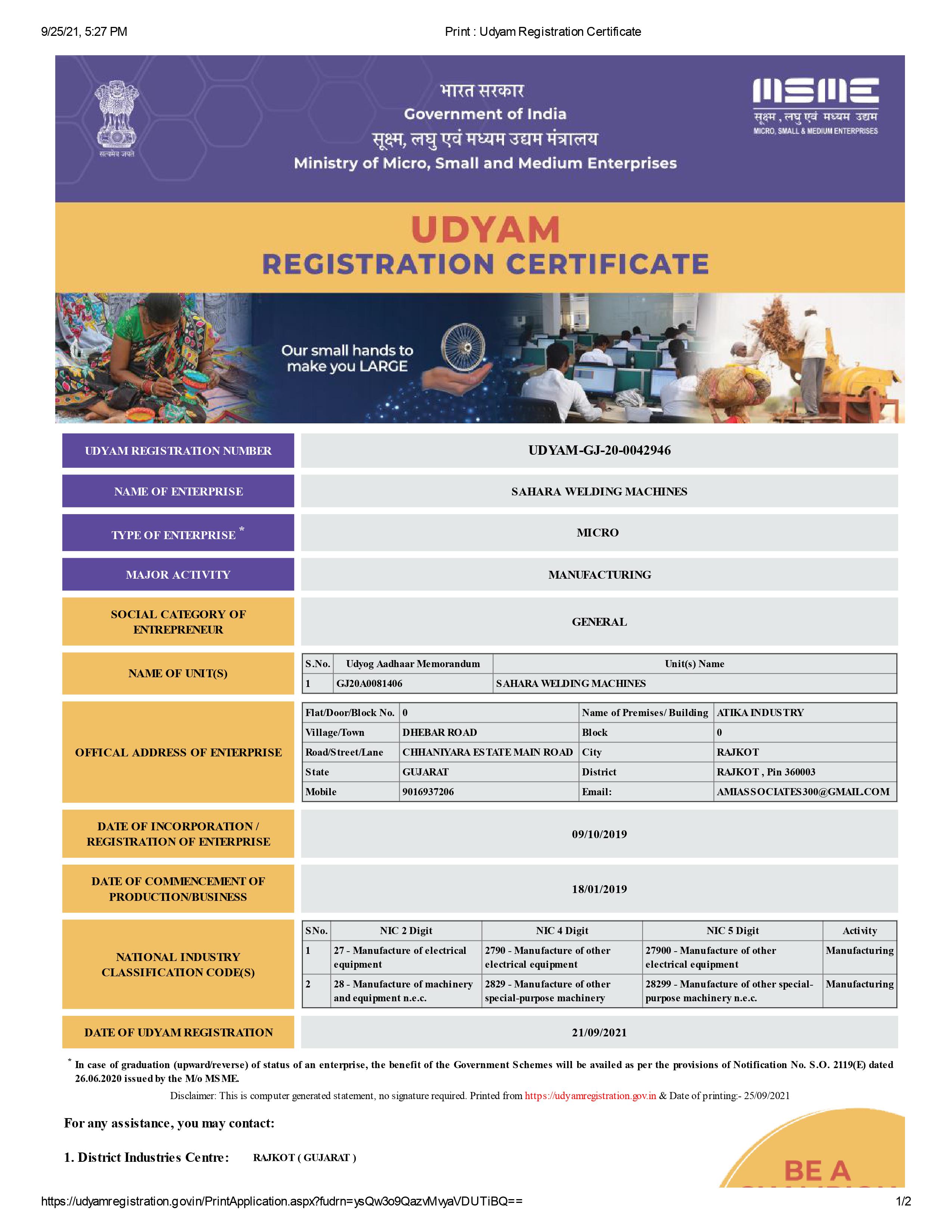 | Registered Address | Chhaniyara Astate Main Road,Opp.street No 4,Rajkot, Gujarat 360002 |